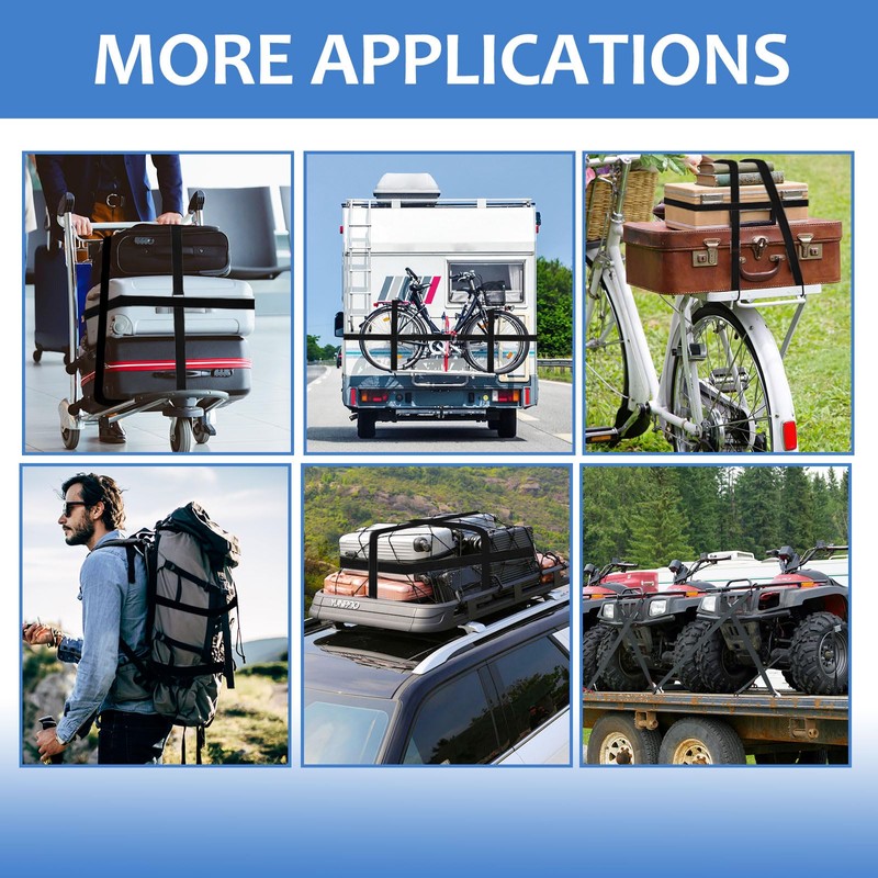 - Widely used: the ratchet strap is suitable for bicycle stands, trunks, cargo and luggage transport as well as for camping, beach, skiing, kayaks, canoes, SUPs, surfboards, outdoor sports and other excursion activities. Whether travelling, moving, outdoor activities or transport, they are very suitable