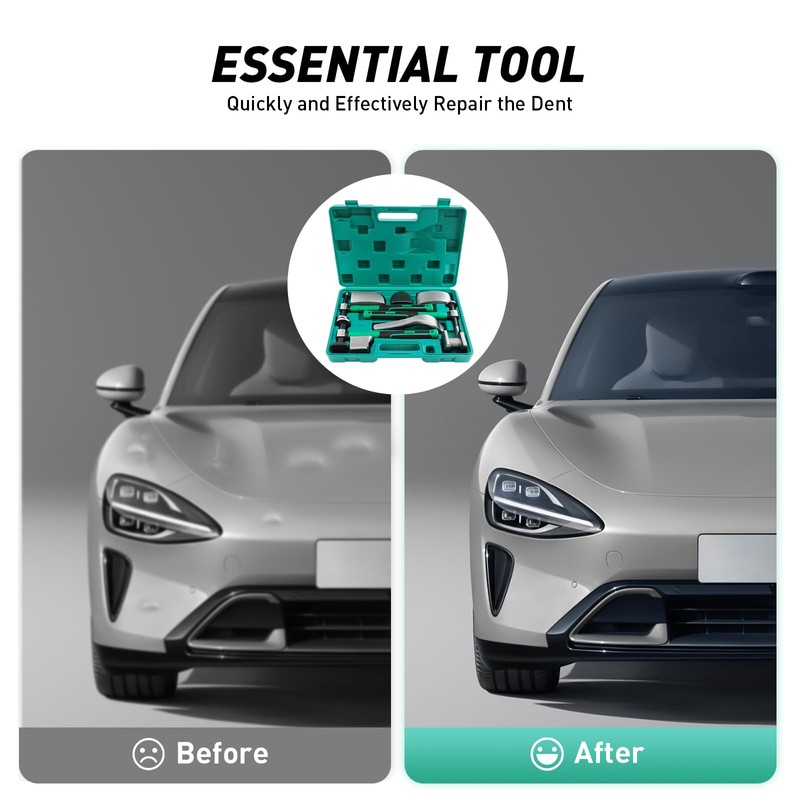 - đăEasy To Carry And StoreăThis dent repair hammer set is designed in a box, you can put the cluttered tools in a box, easy to keep and store, and easy to carry out.