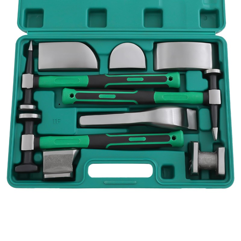 - đăApplicationăThe 9Pcs body hammer and dolly set includes pier, spade, curved, flat, crane, straight, half round, suitable for auto repair and machinery repair.