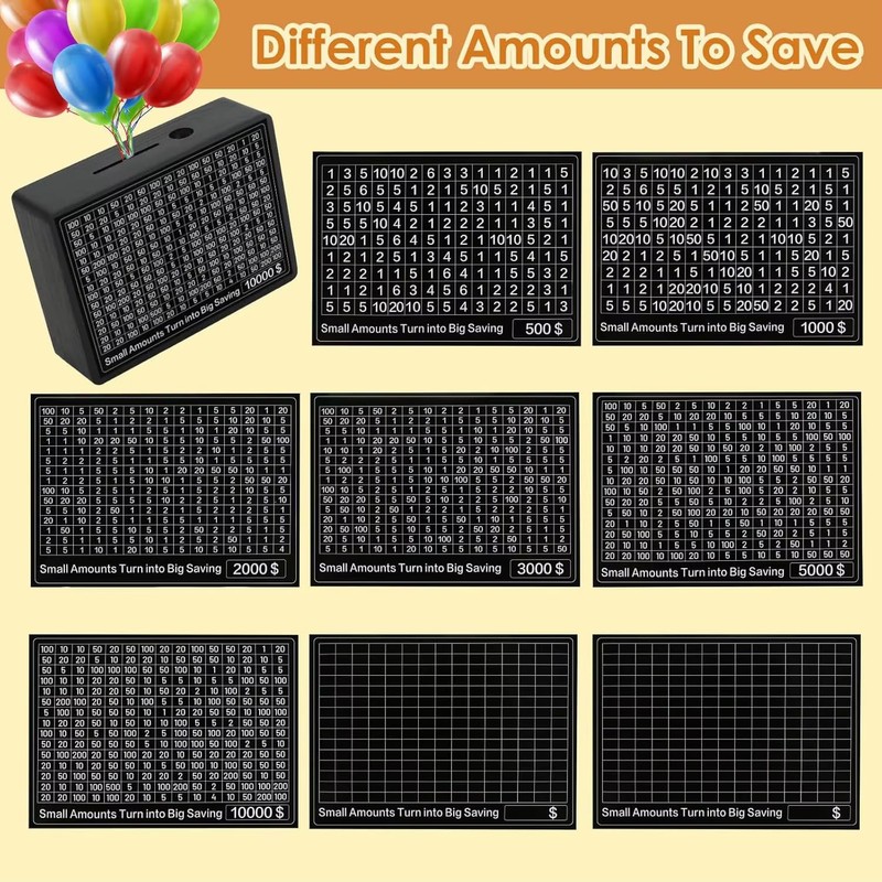 Customizable Targets: With 8 customizable target amounts, you can select and challenge yourself to reach different savings levels, from $500 to $10000.