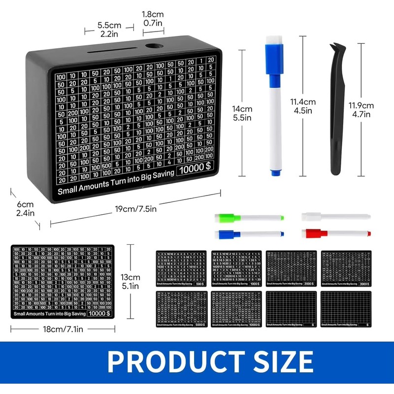 - Complete Set: Comes with everything you need for your savings journey, including 4 pens, 8 stickers, a tweezer, and a plastic plug cover—no assembly required.