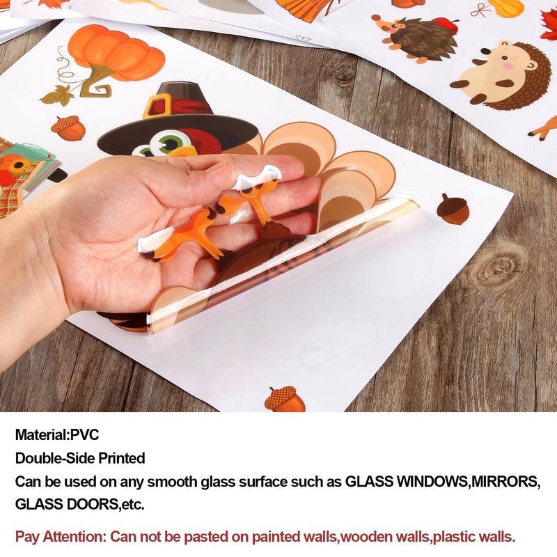 - 【Double-sided prints】 These window hangings are great for spring, summer, fall and winter. The set includes nine elaborate window decals, and each removable vinyl home decor piece measures about 11.8 inches in height and 7.9 inches in width.