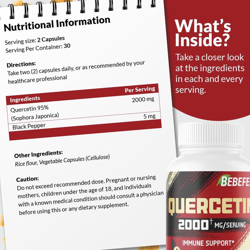 - ⭐Optimal Absorption: Quercetin formula enhanced with Black Pepper!
