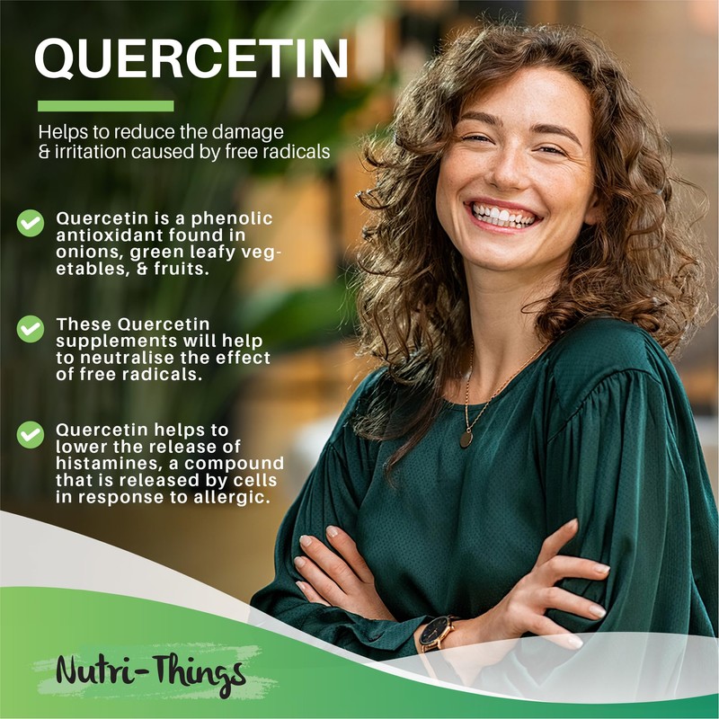 - HELPS YOU AGE HEALTHILY - Quercetin is a potent antioxidant, which means it fights the natural process of ‘oxidation’ that takes place over time as we age. These Quercetin supplements will help to neutralise the effect of free radicals, which negatively impact healthy cells like damaging cell membranes, changing the way DNA works, and increasing cell mutations.