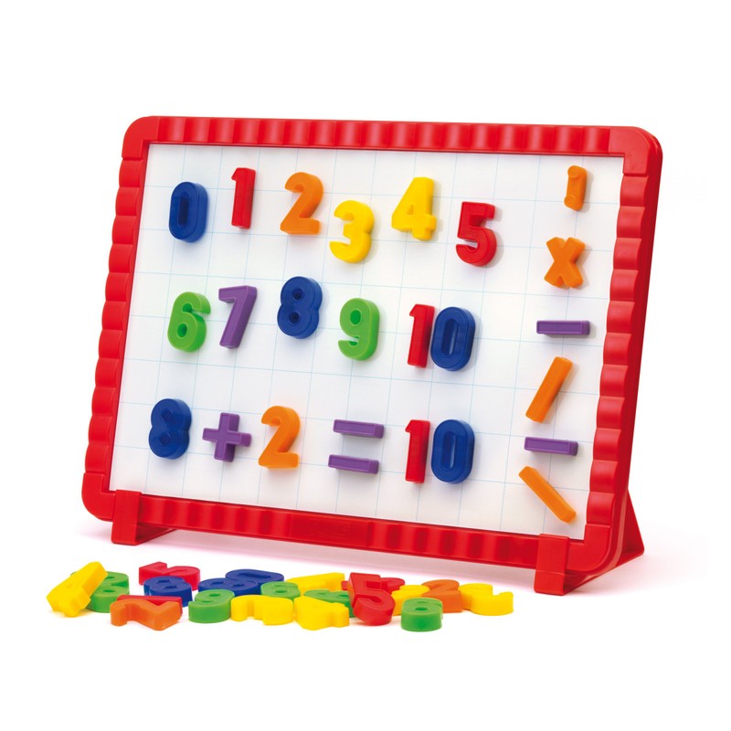 - Place and arrange magnetic numbers and symbols to practice early counting and math skills
