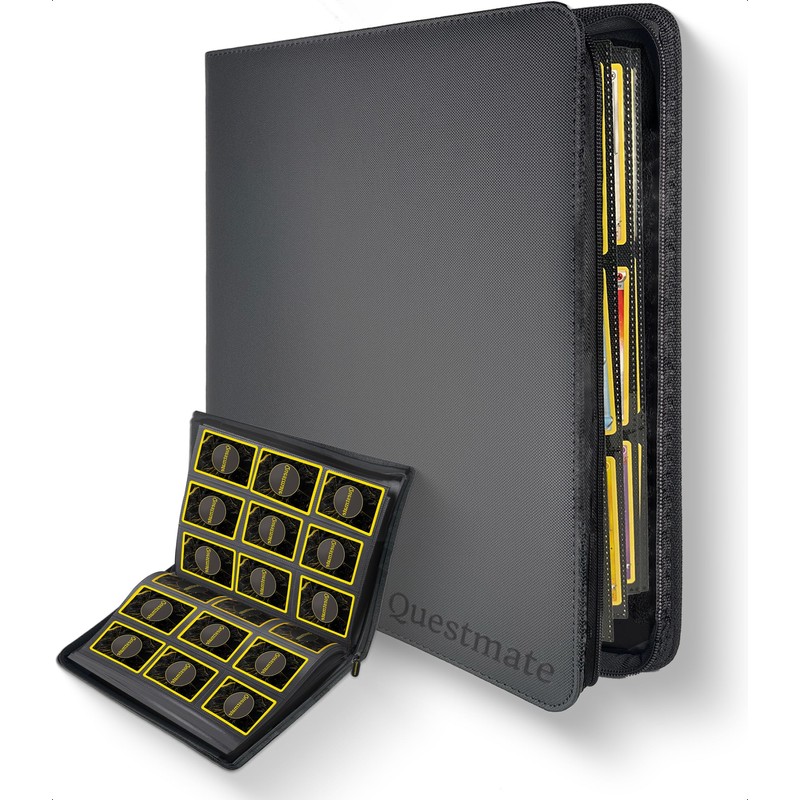 Questmate TCG Verzamelmap Dex - Opbergmap voor 360 Kaarten - 3x Card Sleeves - 9 Pocket Verification Album Map - Binder Bewaarmap for Speelkaarten - Pro Kaartspel Insteekalbum Houder (Grijs)