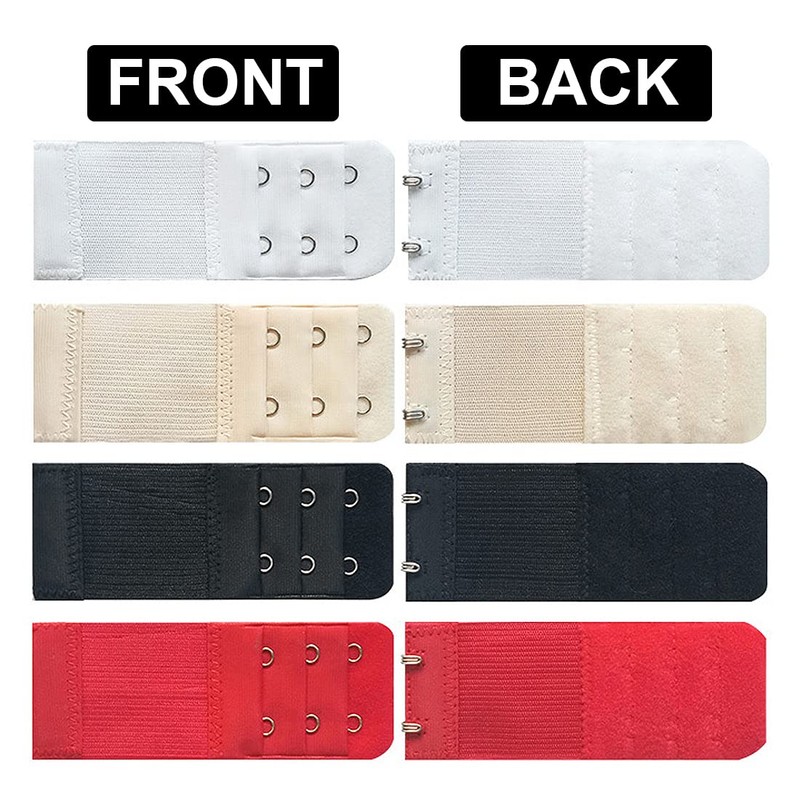 Quesuc Bra Extension 8 Pieces Bra Extension Elastic Bra Extension Hook Black Red White Skin Tone Bra Extender Extension Strap Elastic Band Soft 3 Rows with 3 Buttons 3 Rows with 2 Buttons,