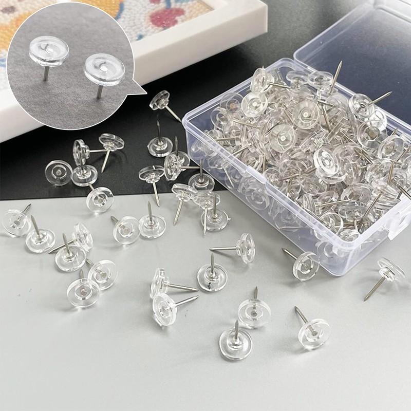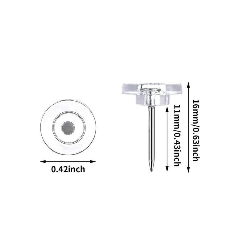 - Versatile: 50 transparent plastic flat head push pins ideal for hanging posters, maps, photos, and artwork on cork boards or walls.