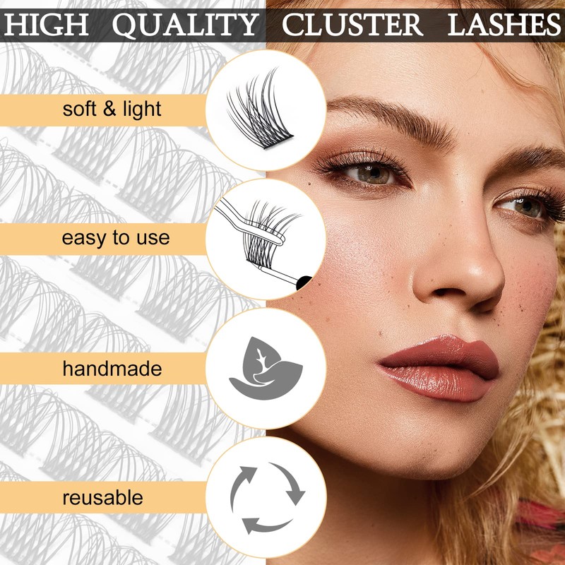 - 🌺【Easy To Use But Do Not Fall Apart】 The eyelash clusters are made of imported materials, super soft and lightweight. The individual lash extensions are easy to pick up from the roots by cluster eyelashes tweezers without falling apart.