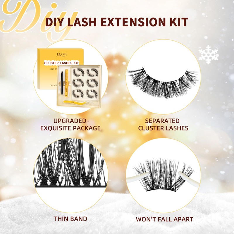 - Excellent Gift Choice: QUEWEL diy lash extension kit is made of carefully selected materials, light and comfortable to wear. This exquisite gift-packaged cluster eyelash extensions kit is the most stunning choice for your mom, sisters, or friends on a birthday, anniversary to express your heart!Of course, it can also be a gift for yourself