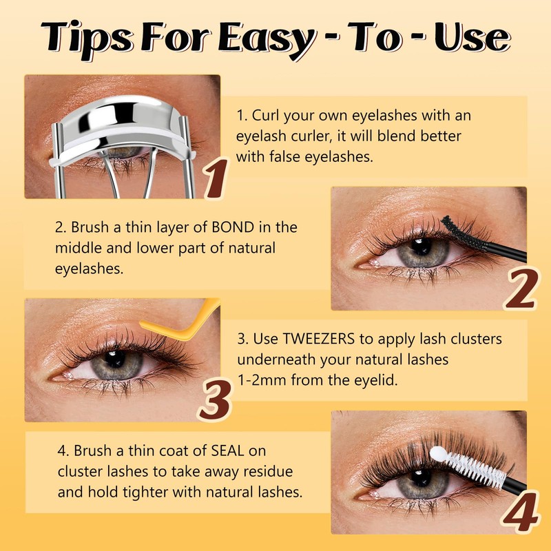 - Natural cluster Lashes: 30D+40D+50D individual eyelashes, give you a more natural lashes look. If you like a natural lashes look, don't miss this individual eyelashes! It's friendly for beginners of lash clusters.