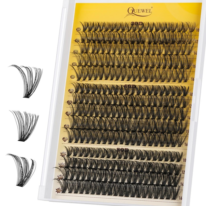 - 3 Individual Eyelashes Mixing: QUEWEL DIY eyelash extension includes three types of mixed eyelash clusters. The eyelash cluster cotton band is soft, light, and knot-free. You can wear eye black all day long without discomfort to your eyes. The density of 30D (10-16mm), 40D (10-16mm), and 50D (10-16mm) eyelashes varies, allowing you to freely mix and match different styles of eyelashes to create your own unique style