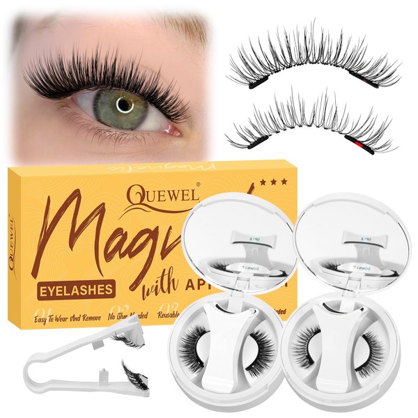 QUEWEL Magnetic Lashes Natural Look, 2 Pair Reusable Magnetic Eyelashes with Applicator, No Glue Needed Manga Eyelashes Magnetices Lashes Kit Easy to Apply and Remove(NZCX-A+G)