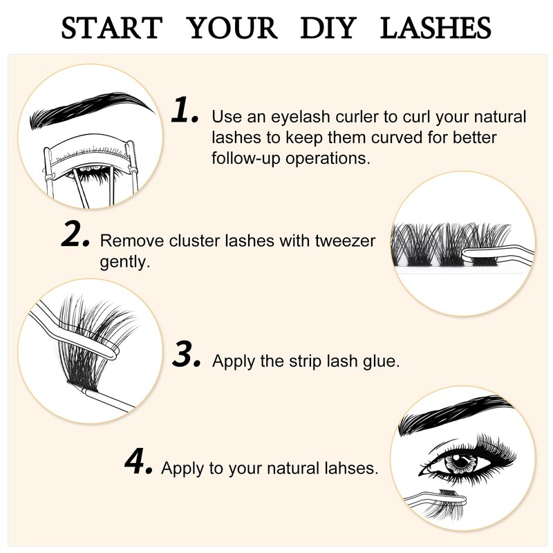 - DIY=Create, Enjoy It!Want to graft lash extension, but the distance is too far or the time is not convenient? DIY eyelash extensions at home with lash clusters glue, create your perfect daily look according to your own preferences, which will make you happier and more confident,just enjoy it!