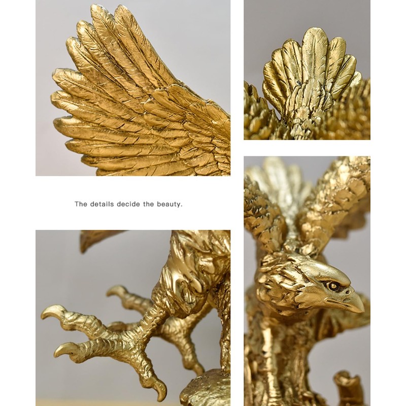 - GOLD EAGLE RESIN - Golden Eagle figurine is a modern decorative sculpture made of durable resin and hand carved crafts. For decoration, art collection, appreciation, festival, birthday, business, gift, souvenir and activities etc. Lucky eagle figurines with lifelike details, durable.