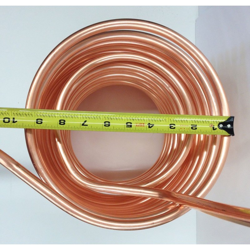- 50 feet of 1/2 inch copper, 1/2 inch outside diameter copper refrigeration tubing