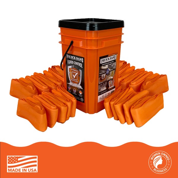 - Square Orange Quick Dam bucket comes with (25) 4ft Water Dams