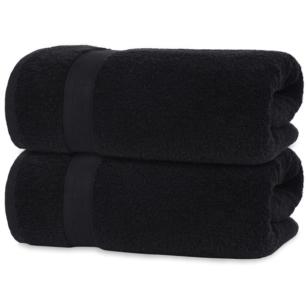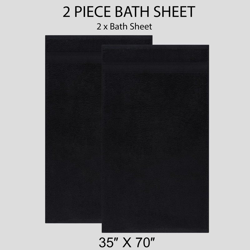 Quick-Dry, Soft & High Absorbent Jumbo Bath Sheet 35"x70" Cotton Turkish Bath Towel Set of 2 | Daily Use 100% Cotton for Bathroom, Gym & More | Bathroom Towels Set (2 Pcs, Black)
