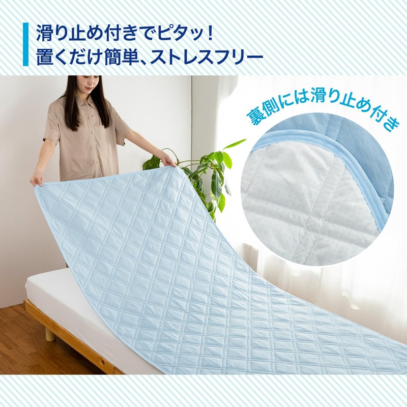 Quick Drying Absorbent Bed Pad, For Summer, Q-max Value 0.3 or higher, Uses Teijin Mighty Top for Filling, Non-Skid Backing for No Troublesome Detachment, Bacteria, Odor Resistant, Dust Mite