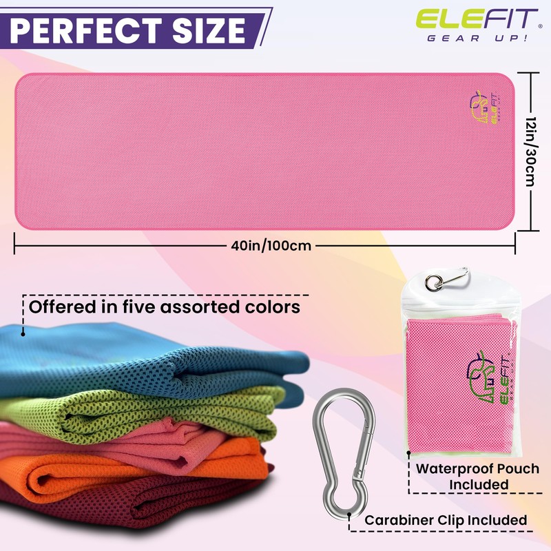 - 🌬️ **PORTABLE PERFORMANCE:** Compact and easy to carry, EleFit Cooling Towels are your go-to companion for on-the-go refreshment across various sports. Clip them to your gym bag or carry them in your pocket – stay prepared for any physical challenge that comes your way. Elevate your active lifestyle with EleFit, wherever your fitness journey takes you.