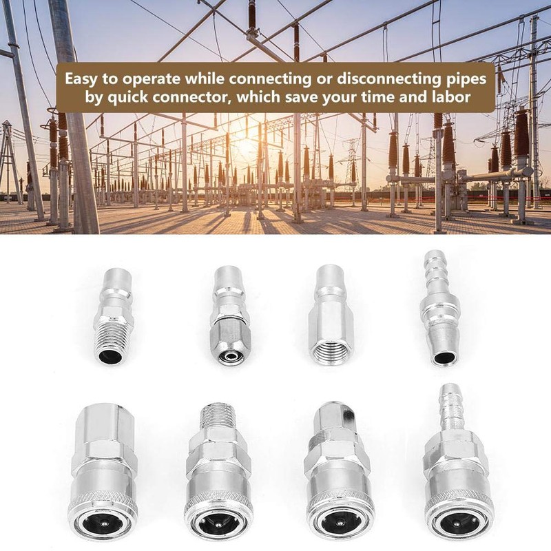 Quick Fitting Connector Kit,8Pcs 3/8 Pneumatic Quick Fittings Release Plug Socket Connector Set for Air Compressor Hose