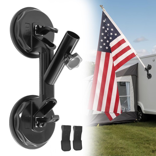 Quick Flag Mount for RVs, New Upgrade Suction Cup Flagpole Holder, Strong Suction Heavy Duty Metal RV Flag Pole Mount Compatible with Camper, Truck, Boats, Yachts