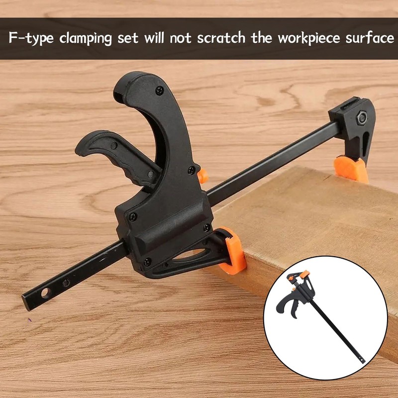 The F clamps for woodwork are made of high-quality plastic and silicone materials. The durable material provides a structure that won't bend and flex under pressure and repeated use. Our wood clamps can withstand the rigors of the workshop.