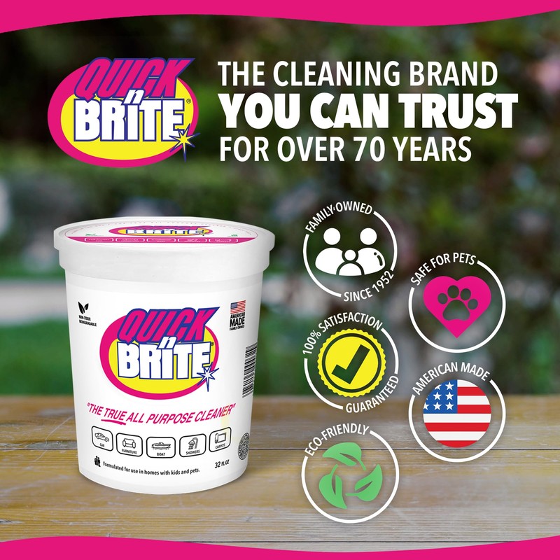 - ULTIMATE ALL-PURPOSE CLEANER C Quick 'n Brite replaces multiple household cleaners, tackling tough stains, grease, and grime on carpets, ovens, BBQs, kitchens, shoes, and more.