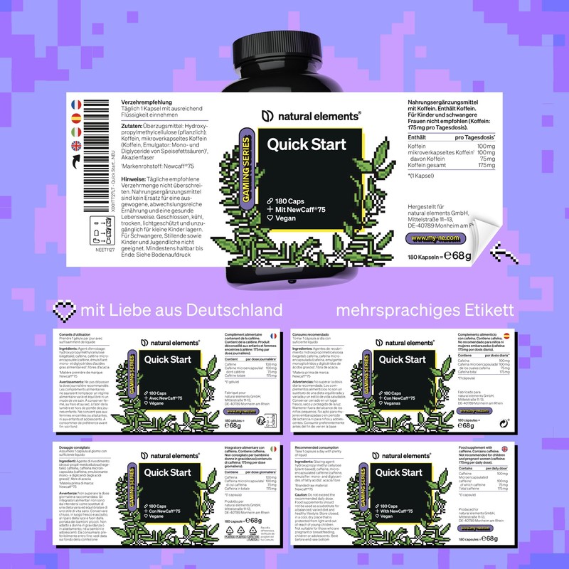 - 2-way caffeine kick: In extensive gamer sessions, waking moments are crucial to play. Quick Start supports you with double the power of fast and long-term caffeine. Caffeine kicks: Yay! Caffeine Crashes: Nay!