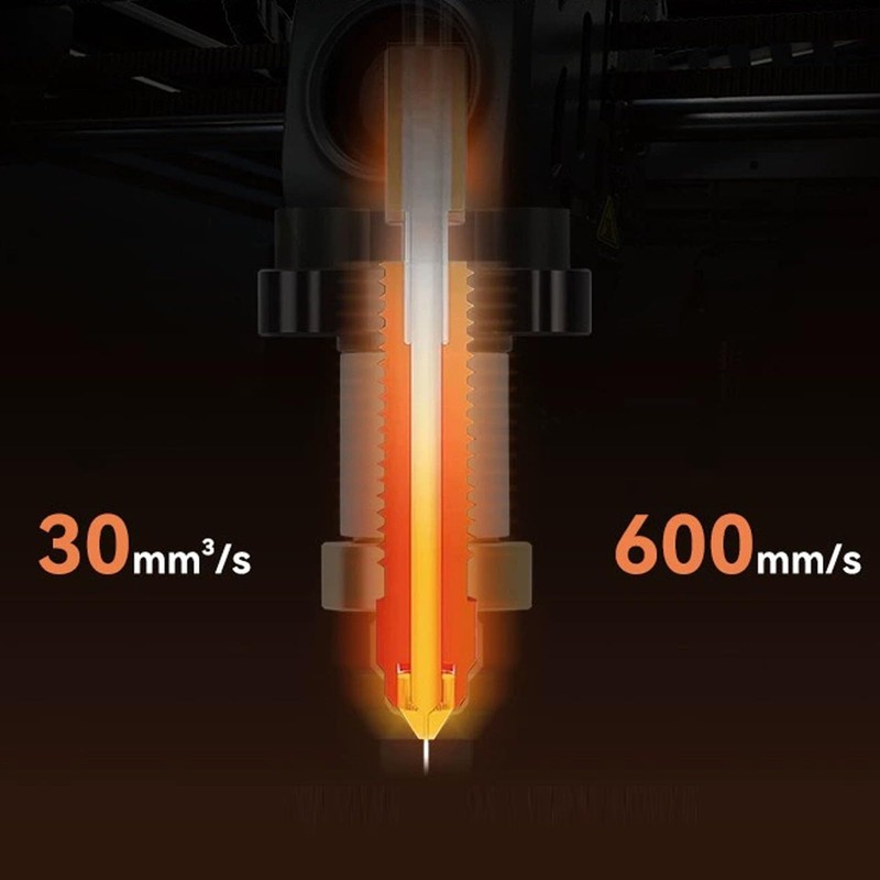 - Upgraded Materials: The insulation device is made of Ti alloy and can reduce heat conduction, while the nozzle is made of hardened steel and CrZrCu, with a Mohs hardness of 7.8.