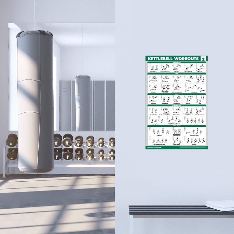 QuickFit 2 Pack - Kettlebell Workout Exercise Poster Set- Volume 1 & 2 - Laminated Kettle Bell Chart - 18" x 27"