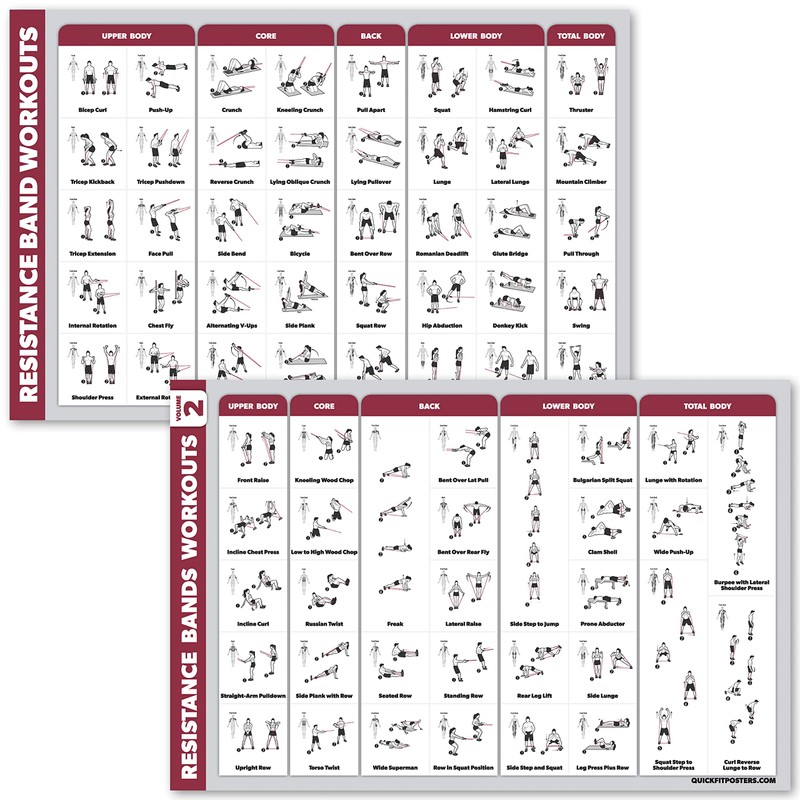QuickFit 2 Pack Resistance Bands Volume 1 & 2 Exercise Poster Set - Resistanc...