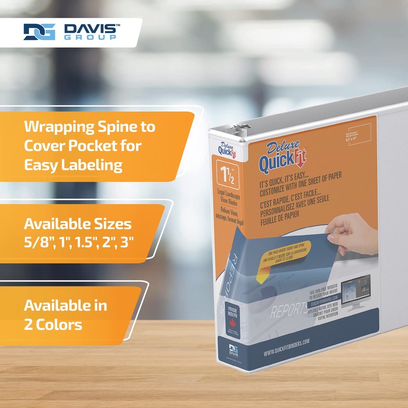 QuickFit Landscape 3 Ring Legal Binder, Heavy-Duty Round-Ring Binder with Clear-View Cover, 8.5" x 14", Pack of 4, Round Ring, White
