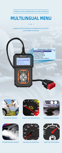 This OBD2 scanner is compatible with 12V gasoline vehicles and should never be modified.
