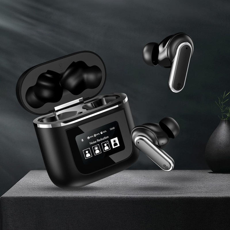 QUICKPAPA Premium Noise-Cancelling Bluetooth Earbuds with Screen Case and Type-C Charging (Black)