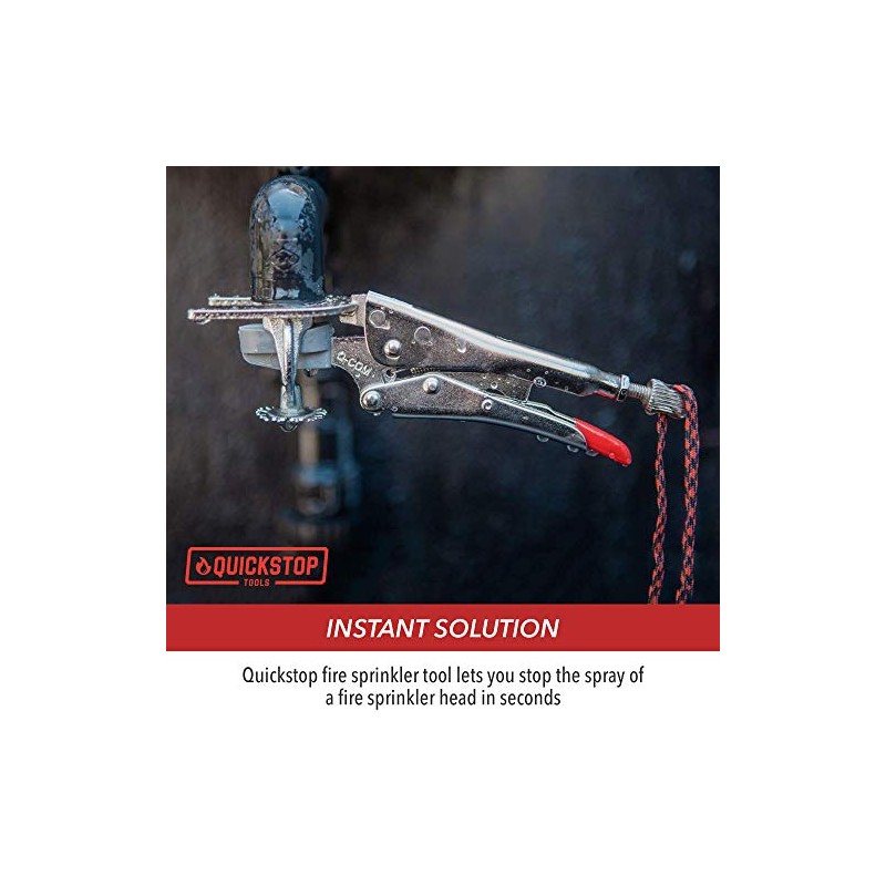- EASY ONE-HAND OPERATION: the red quick-release arm on the Quickstop fire sprinkler tool lets you stop the spray of a fire sprinkler head in seconds as well as remove it with just one hand. Simply slide the sprinkler tool around the sprinkler head and squeeze the handle - no special training is required to use it.