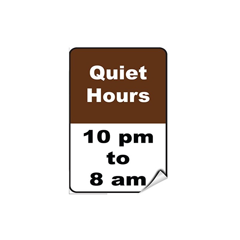 Quiet Hours 10 Pm to 8 Am Activity Sign Campground Signs Label Decal Sticker 9 inches x 12 inches
