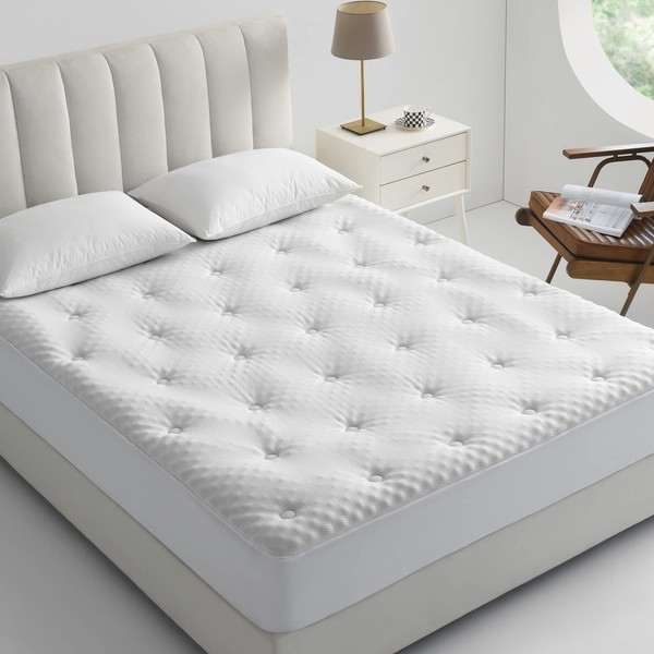- 【Reversible Design for Best Value】The reverse side surface of the waterproof mattress pad queen is powered by Nanotex technology, which makes the reverse surface waterproof, spill & stain resistant, and recyclable, but still it is of great breathability. Reversible design doubles the lifespan & value of the mattress cover queen size.