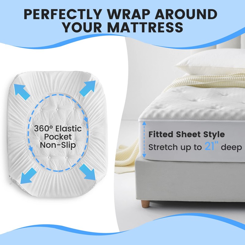 - 【Deep Pocket & Easy Care】360° Fully elastic skirt for fitted sheet style fits your mattress up to 21 inch deep, so that your queen mattress topper always stays where you want it to be. SPOT CLEAN ONLY. Address visible spots using mild spotting agents on the impacted areas.