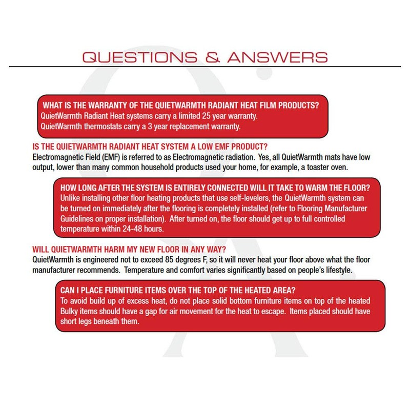- cost less to operate - even heat distribution allows the quietwarmth systems to cycle quicker resulting in less energy consumption