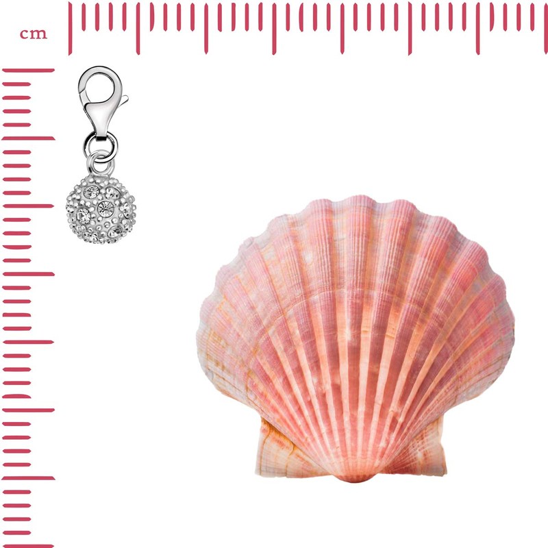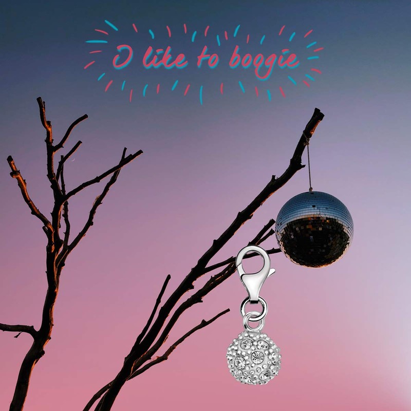 Quiges 3D Ball Clip On Charm Pendant with Cubic Zirconia Silver Plated Women's Jewellery