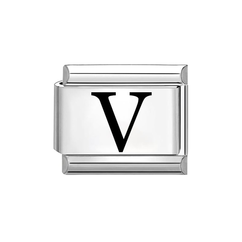 Quiges – 9 mm Laser Etched Italian Style Module Stainless Steel Alphabet Letter V for Italian Charm Bracelets