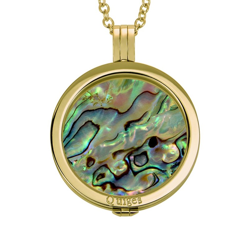 Quiges 90 cm Necklace Stainless Steel Set with Pendant and 33 mm Large Abalone Shell Coin, Shell, Shell