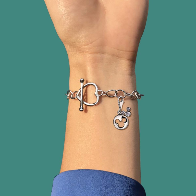 Quiges 925 Silver Cartoon Mouse Charm with Lobster Clasp for Bracelets, Silver, Cubic Zirconia