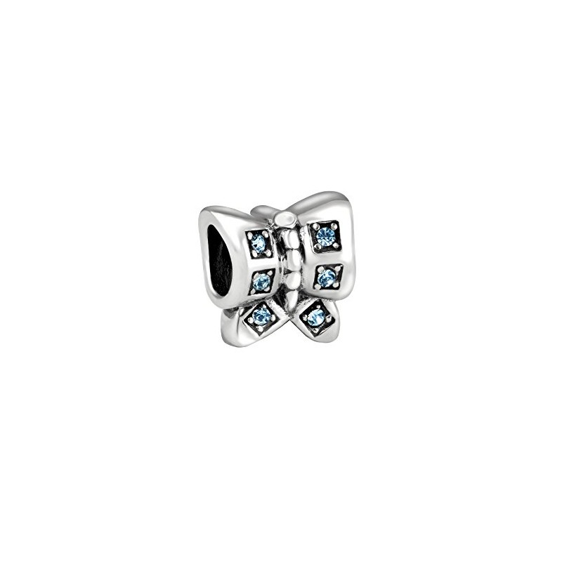 Quiges 925 Sterling Silver 3D Cubic Zirconia Crystal Butterfly Bead Charm, Crystal, Cubic Zirconia
