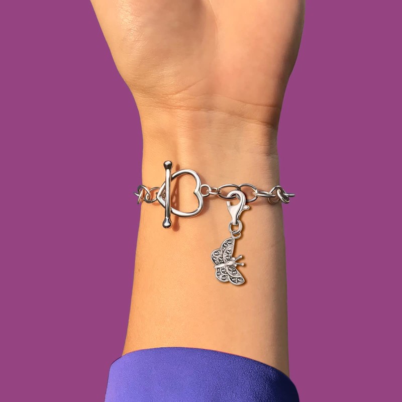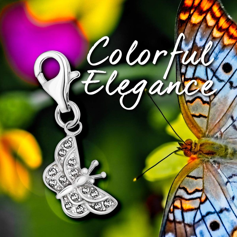 Quiges Butterfly Clip On Charm Pendant with Cubic Zirconia Silver Plated Women's Jewellery