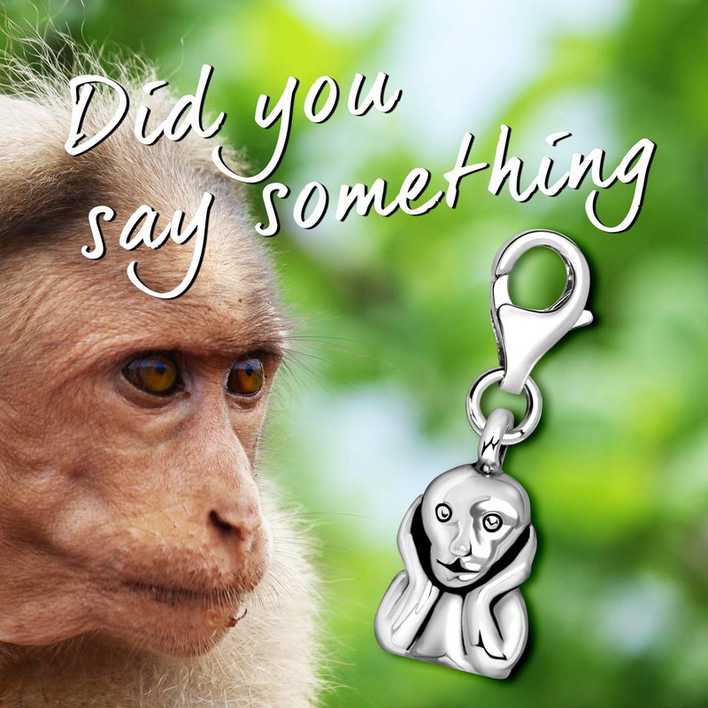 Quiges Charms Silver Plated Monkey Hearing Clip on Charm Lobster Clasp for Thomas Sabo style bracelets