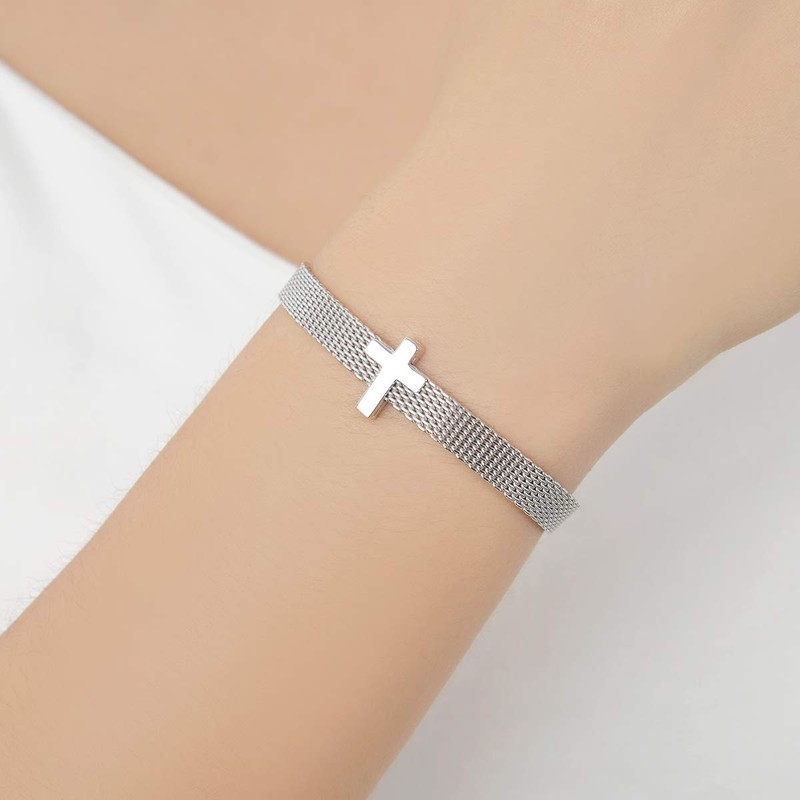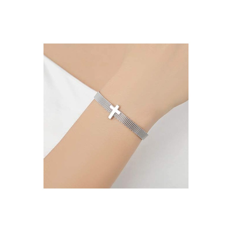 Quiges Women Mesh Bracelet Charm Cross made of 925 Sterling Silver