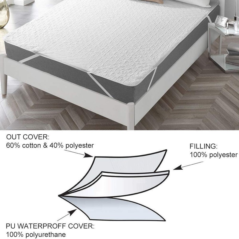 • 【Material】Material: 1 layer: Outer cover 60% cotton &40% polyester. 2 layer: Filling: 100% polyester. 3 layers: PU waterproof cover: 100% polyurethane. 3-layers design features a soft cotton blend quilted top layer, leak proof inner layers, Our pad offers not only unparalleled comfort but defense against leaks.