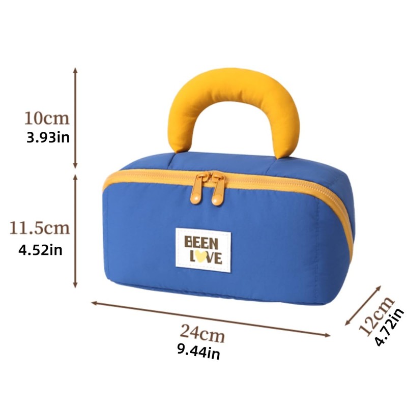 - DESIGN FEATURES: Quilted puffer style makeup bag with waterproof nylon material and convenient top handle for easy carrying and transport